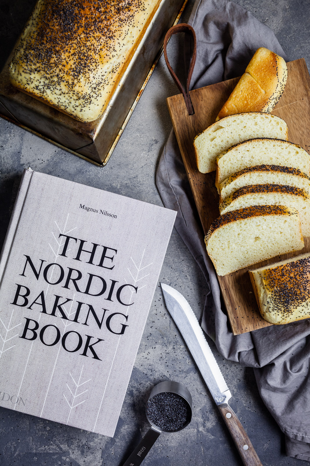 It was recommended that I make two specific recipes from the Nordic Baking Book and the first one I was asked to make and share is a Swedish Wheat Loaf with Poppy Seeds. It’s a white milk bread which has its roots in a traditional challah. The Swedified version though does not contain any eggs (except in the egg wash if you count that) and doesn’t have the traditional braided appearance that challah does. It’s a fabulous bread and actually quite easy to make. It was my first time using fresh yeast and I loved using it but this way - it dissolves nicely and I will def be using it again. If you don’t have fresh yeast available, according to Nigella.com if the recipe has 30g (1 ounce) fresh yeast then you can use 15g (½ ounce) active dry yeast or 7g (¼ ounce) instant yeast instead.