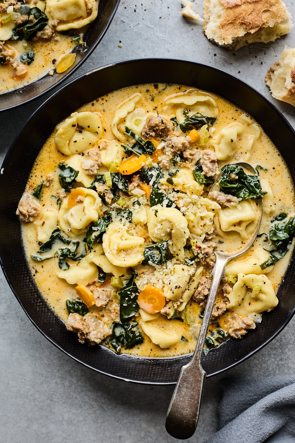 There’s nothing more comforting than a bowl of creamy sausage tortellini soup. Filled with cheese tortellini, italian sausage, kale, simple seasoning, broth and cream, this hearty soup is ready in just 30 minutes and made in a single pot. If you love my Creamy Tuscan Tortellini Soup you will also love this hearty version of tortellini soup! Pure comfort food! Tortellini soup recipes are a family favourite - this is another one we make quite often and hope you enjoy it!
