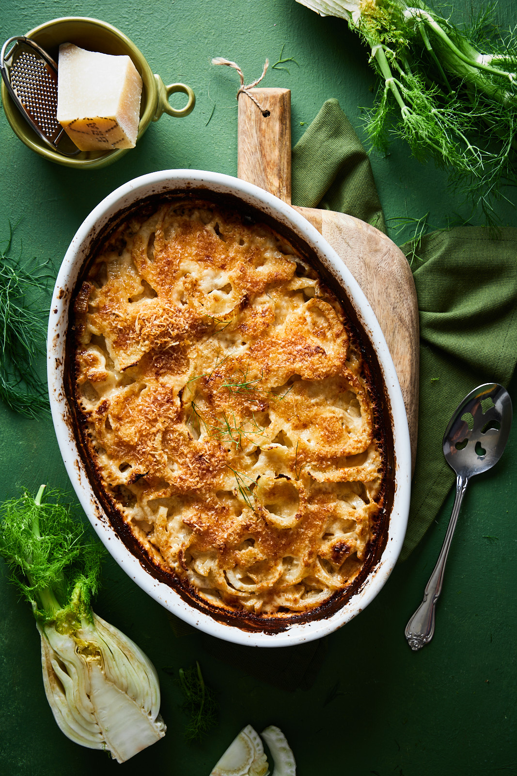 This is meant to be a rich, indulgent and delicious savoury bake up - please do not skimp on the heavy cream and use 2% milk or light cream. It just won’t work. If you prefer a different cheese then the Parmesan feel free to use something like Grana Padano or Pecorino Romano. If you want this gluten free you can substitute the bread crumbs for gluten free ones or leave it out all together. I loved the rosemary with the fennel but thyme would be nice here too.