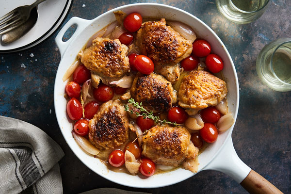 There are more reasons I was drawn to this recipe other than it being made with thighs (you can definitely make this with breast or leg and thigh pieces too - just increase cooking time as needed). There is a beloved Greek stew called stifado that is made with any stewing meat and pearled onions. I love it and I immediately thought of it when I saw this recipe. I just had to make it. I was also drawn to it is because it’s a one pan dish. Less cleanup and just perfect on it’s own with crusty bread and a salad or a simple side like rice or mashed potatoes or even a creamy cauliflower mash. It’s easy enough for a midweek dinner but fancy enough for a dinner party.