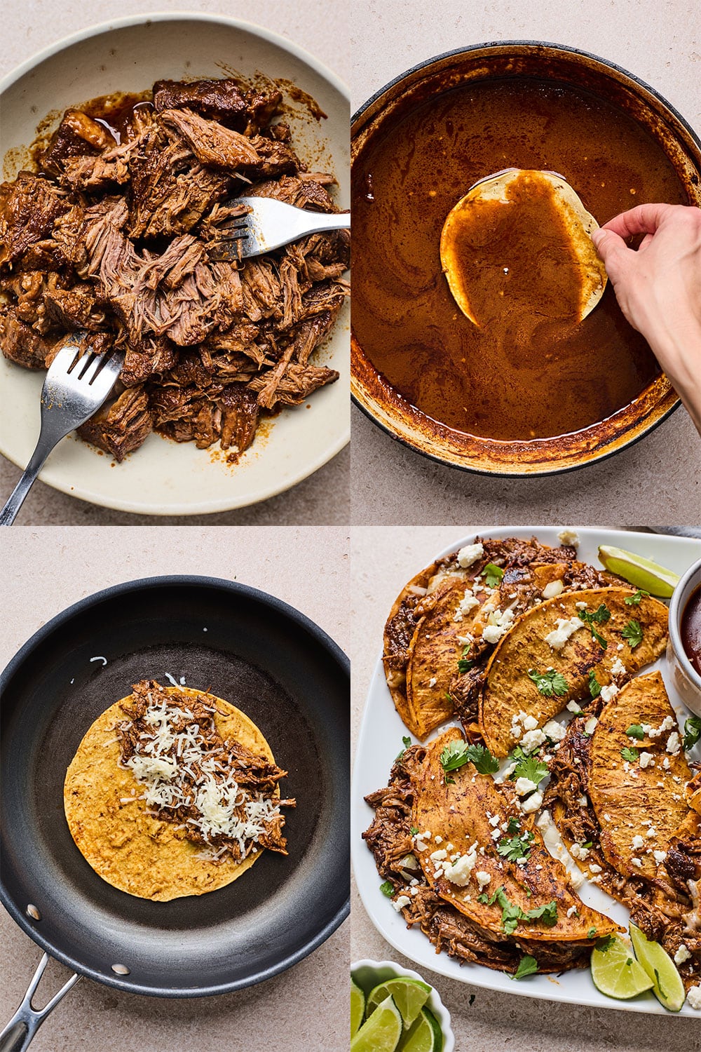 - Repeat with the remaining tortillas and serve with any remaining braising liquid on the side for dipping.