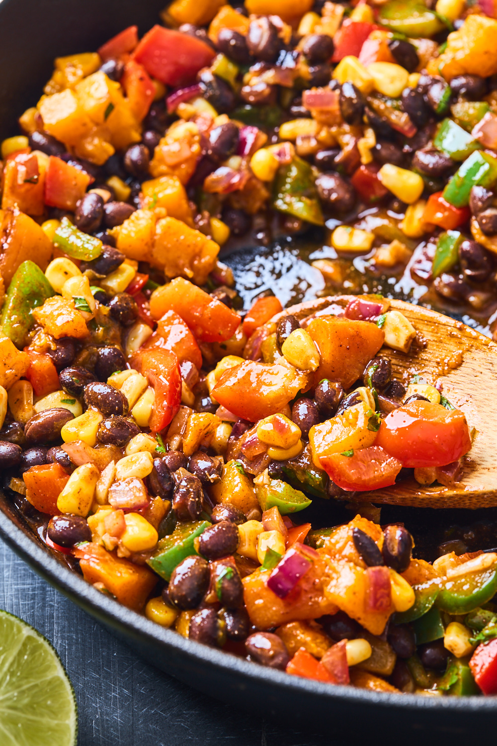 - They are loaded with veggies and protein - Including: Butternut Squash, Bell Peppers, Onions, Corn (fresh or frozen) And really, just about any other veggies you could want. Spinach, mushrooms, poblano peppers, sweet potatoes, cauliflower… literally all of the above can work. The black beans add great texture and protein.